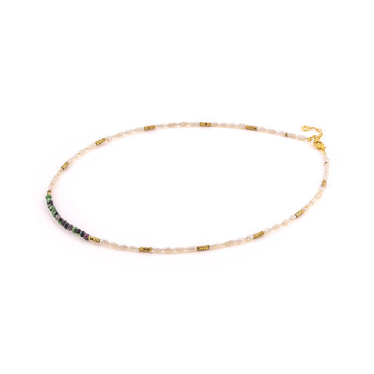 Ασημένιο κολιέ με ζοϊσίτη από μαργαριτάρια και ρουμπίνια