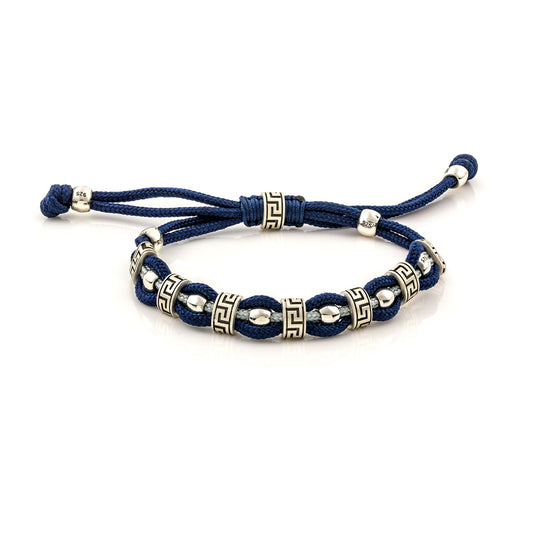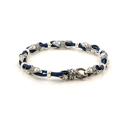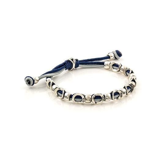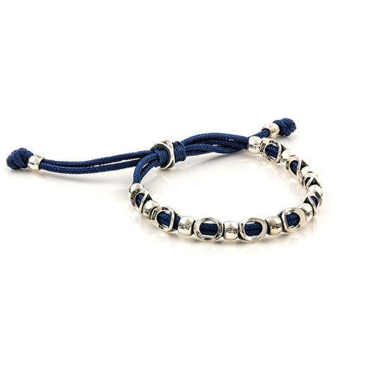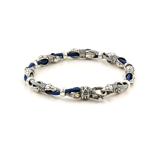 Ασημένιο βραχιόλι με μπλε κορδόνι και περίτεχνα ασημένια στοιχεία