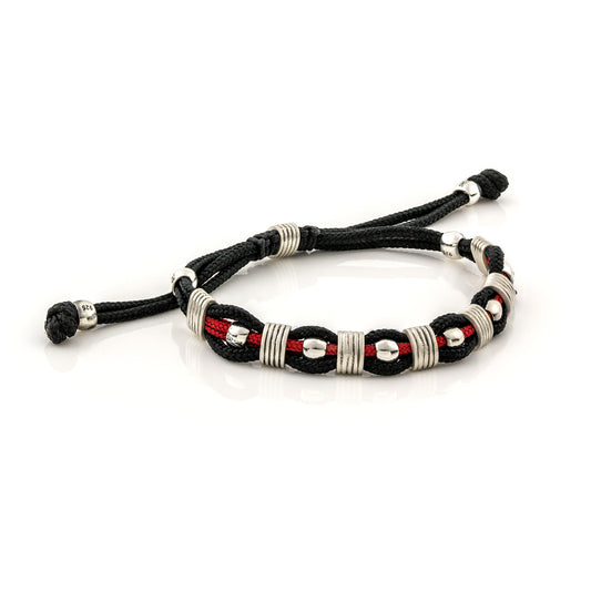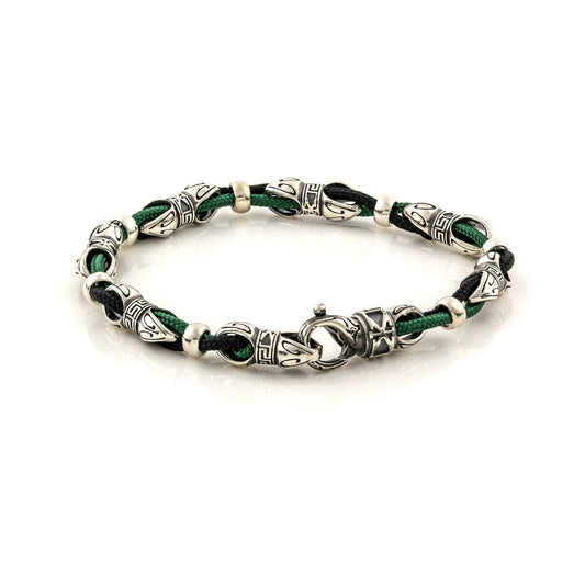 Ασημένιο βραχιόλι με μεταλλικές μπίλιες και εντυπωσιακό σχέδιο μαιάνδρου
