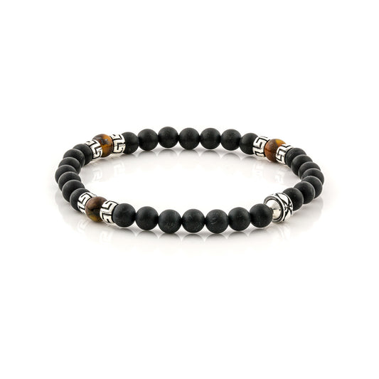 Βραχιόλι με Black Onyx χάντρες και ασημένιο σχέδιο μαιάνδρου