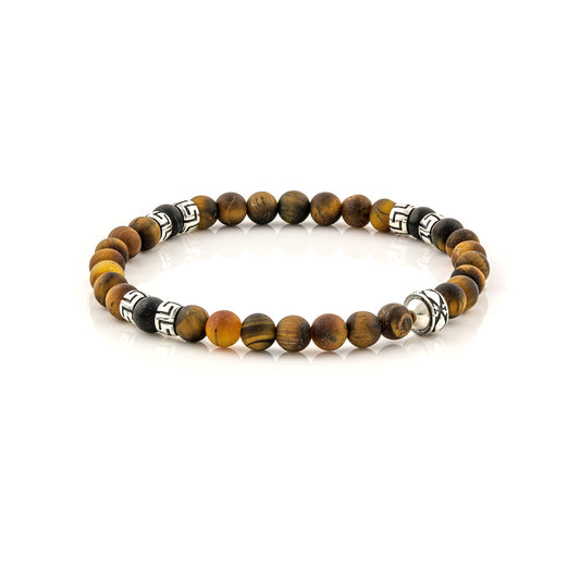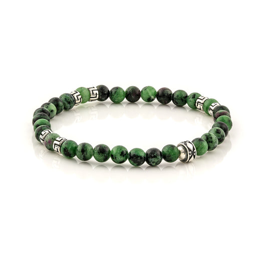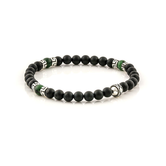 Βραχιόλι με Black Onyx και Jasper χάντρες και ασημένιο σχέδιο μαιάνδρου