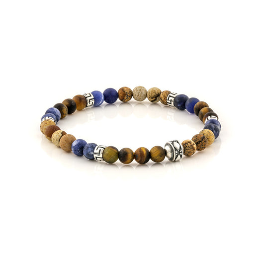 Βραχιόλι με χάντρες από σοδαλίτη, jasper και αχάτη και με ασημένια στοιχεία