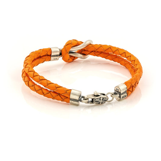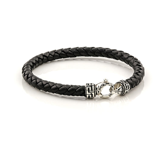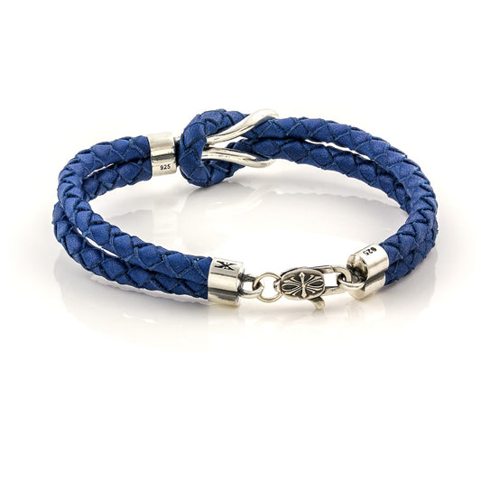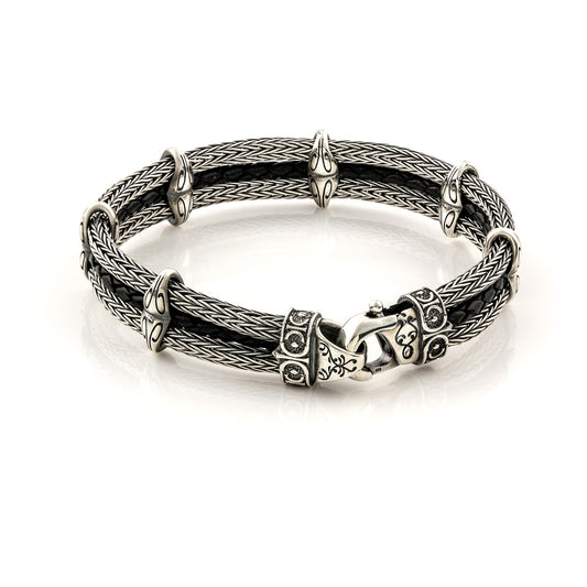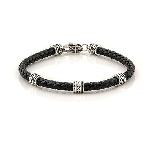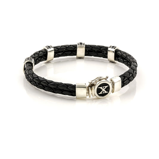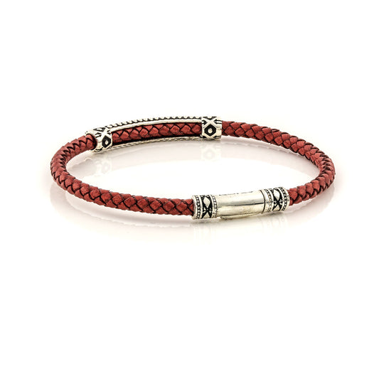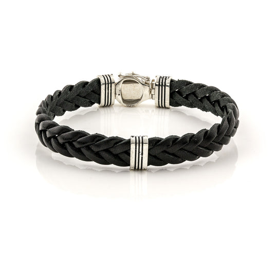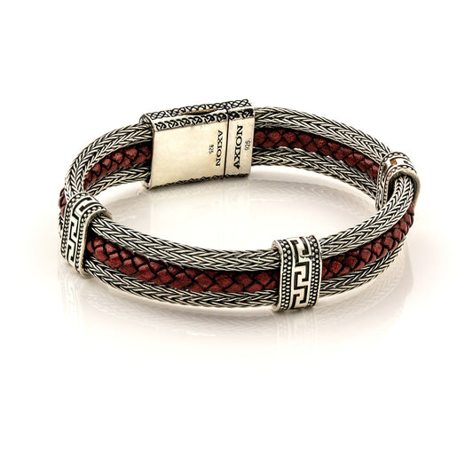 Ασημένιο βραχιόλι από γνήσιο πλεκτό δέρμα