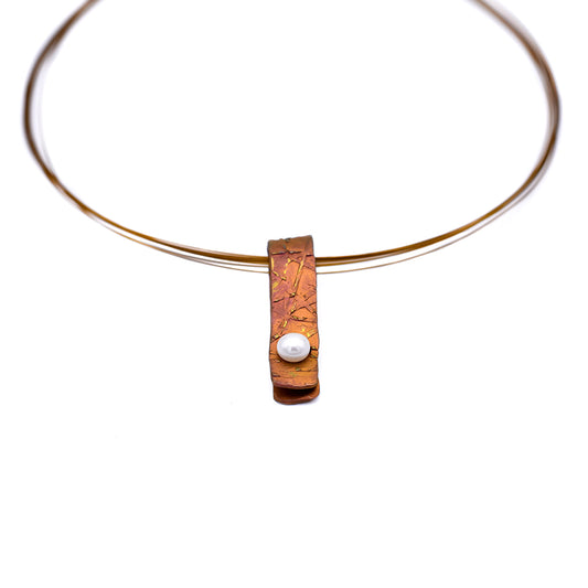 Κολιέ τιτανίου σε διπλωμένο σχέδιο με ένα κομψό μαργαριτάρι