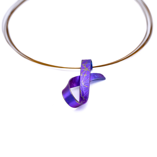 Κολιέ με στριφτή μωβ κορδέλα τιτανίου