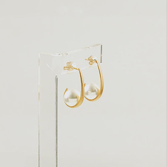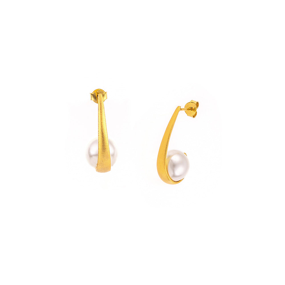Ασημένια σκουλαρίκια 925ο που αγκαλιάζουν δύο μαργαριτάρια του γλυκού νερού, δίνοντας την ψευδαίσθηση της αιώρησης, χαρίζοντας μία ανάλαφρη ενέργεια και λάμψη.