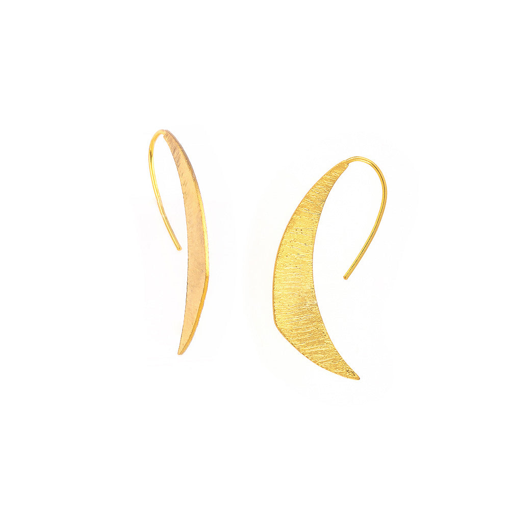 Ασημένια σκουλαρίκια 925ο επίπεδης σαγρέ επιφάνειας σε μοντέρνο γραμμικό σχέδιο, που αγκαλιάζει το πρόσωπο.