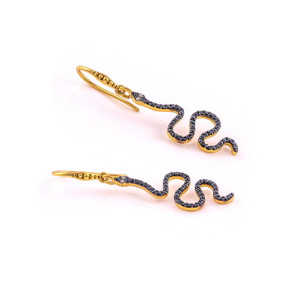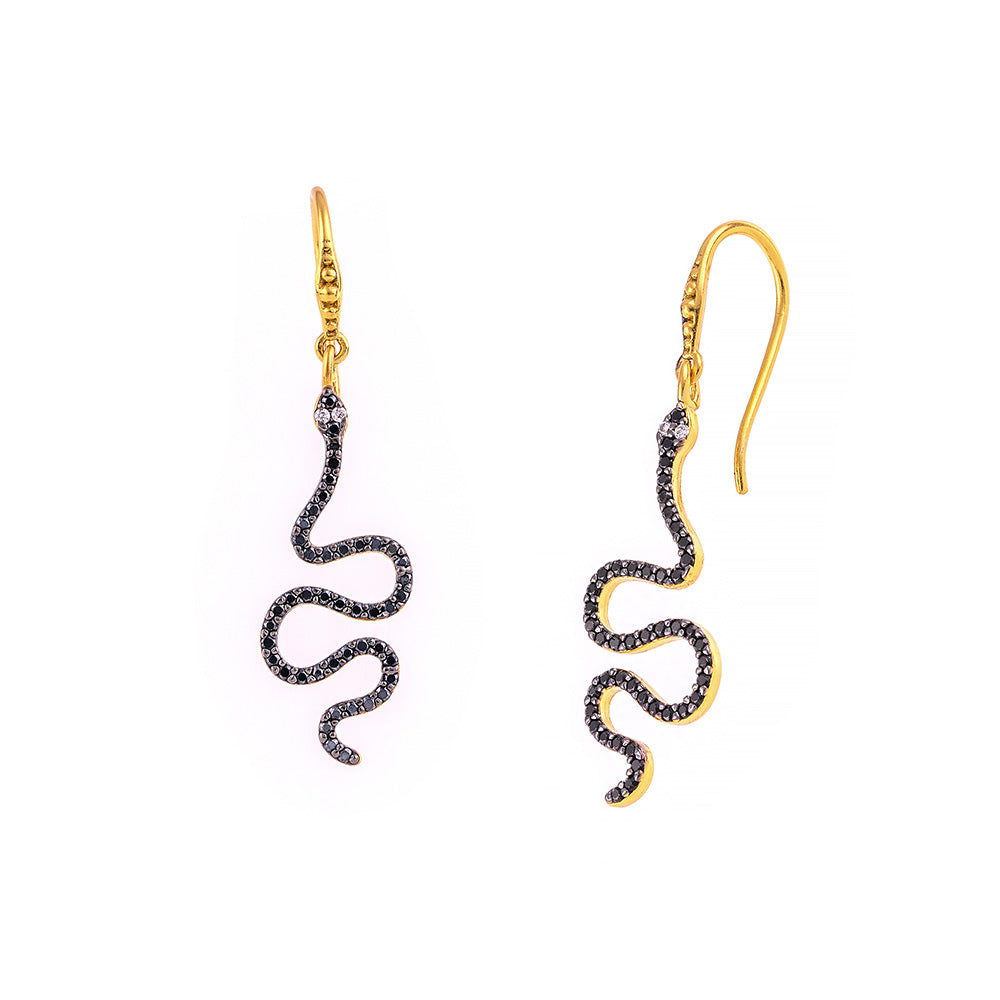 Ασημένια σκουλαρίκια 925ο σε σχήμα φιδιού αποτελούμενου από μάυρα και λευκά ζιργκόν που του χαρίζουν το ιδανικό χρώμα και τη λάμψη που θα αναδείξει κάθε γυναικείο πρόσωπο