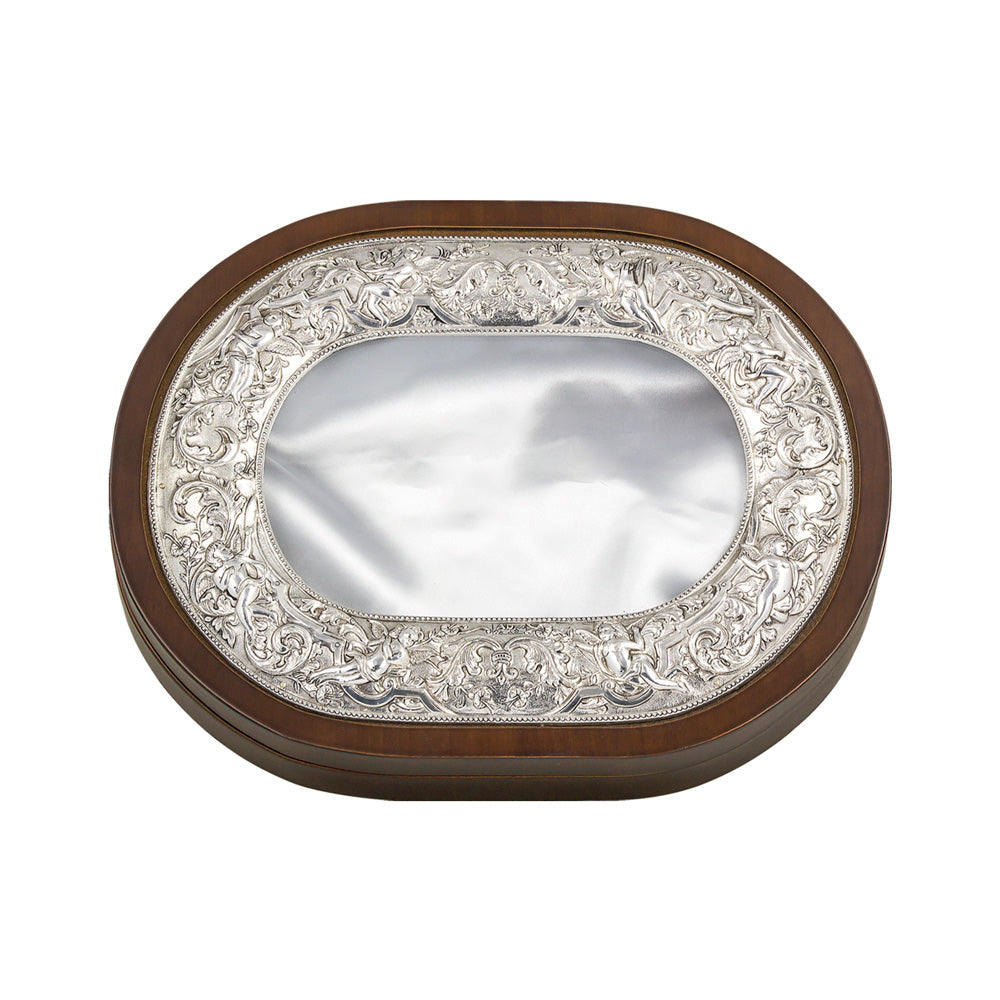 Ασημένια στεφανοθήκη 925ο με περίτεχνα ανάγλυφα σχέδια του Θεού Έρωτα.