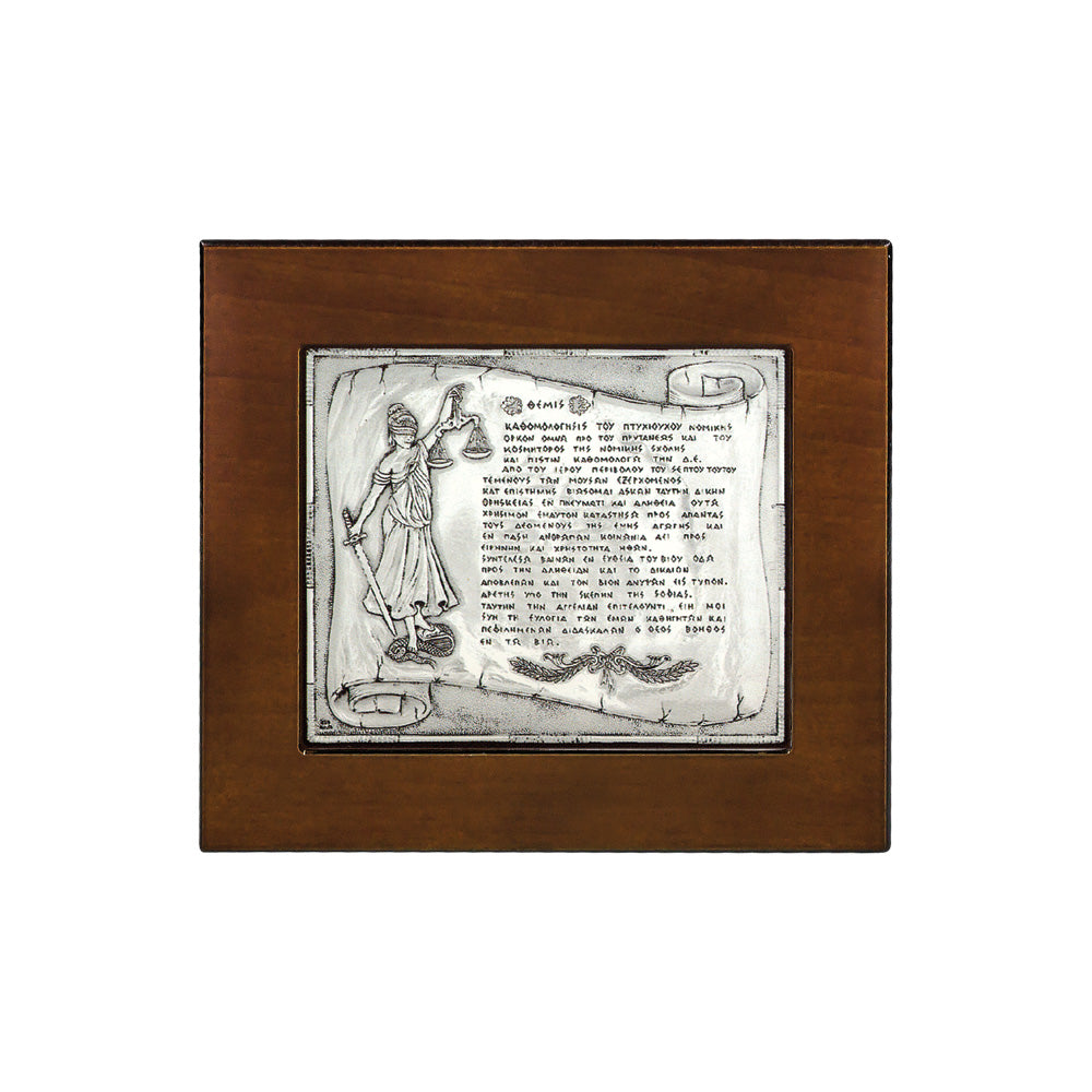 Ασημένιος «Όρκος της Θέμιδος» 925ο μέσα σε όμορφο ξύλινο κάδρο.