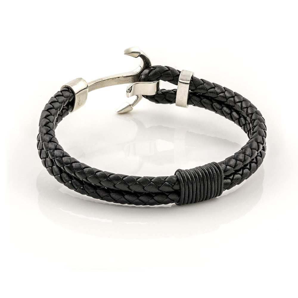 Ασημένιο βραχιόλι 925ο με άγκυρα σε διπλό γνήσιο δέρμα, σχεδιασμένο να συμβολίζει την ολοκλήρωση αλλά και το νέο ξεκίνημα μεγάλων ταξιδιών σε ανοιχτά πελάγη.