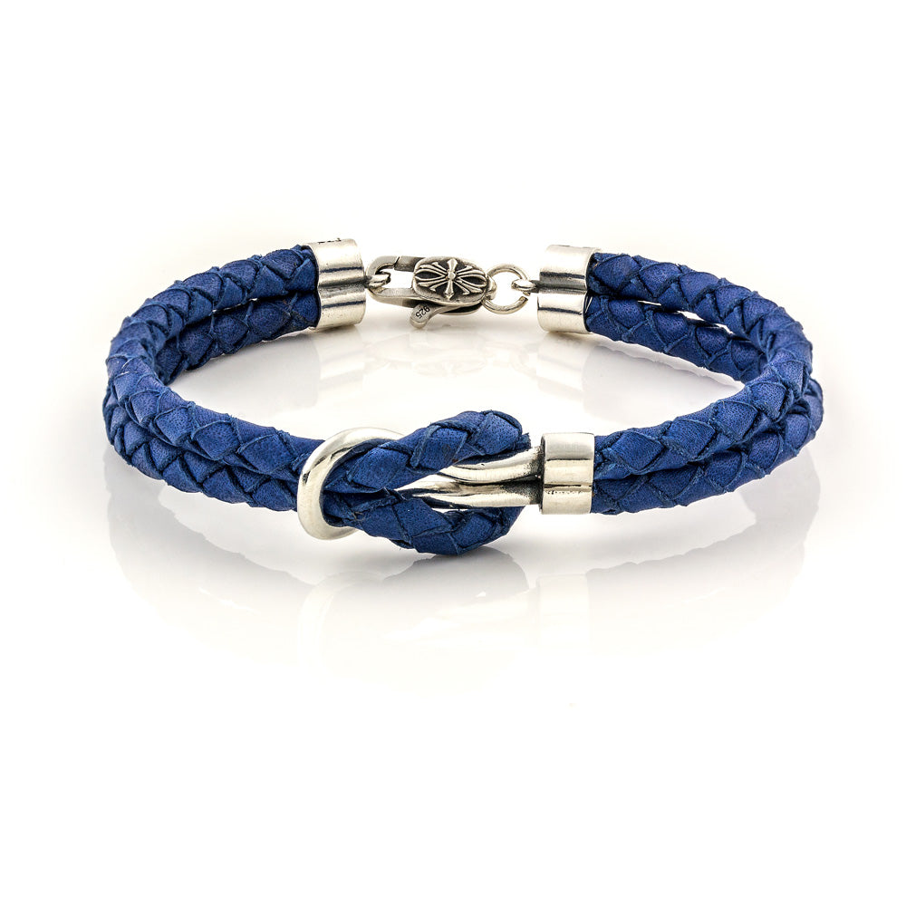 Ασημένιο βραχιόλι 925ο με γνήσιο δέρμα, σε σχέδιο ναυτικού κόμπου, φτιαγμένο για τους έμπειρους ναυτικούς της ζωής.