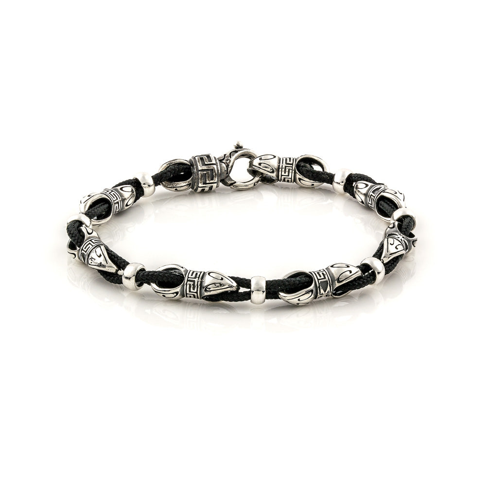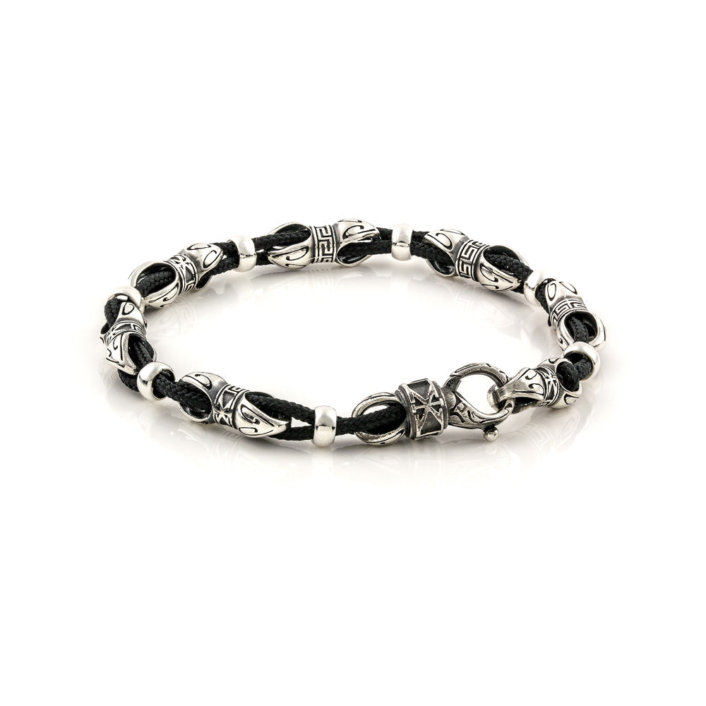 Ασημένιο βραχιόλι 925ο με εντυπωσιακές λεπτομέρειες και μαύρο κορδόνι.