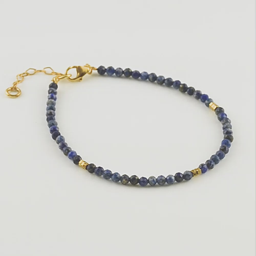 Ασημένιο βραχιόλι 925ο με ημιπολύτιμες πέτρες λάπις λάζουλι, και μικρές λεπτομέρειες μετάλλου που του χαρίζουν μια ιδιαίτερη λάμψη.