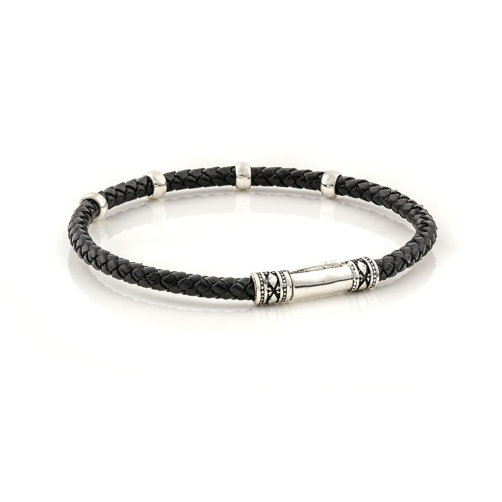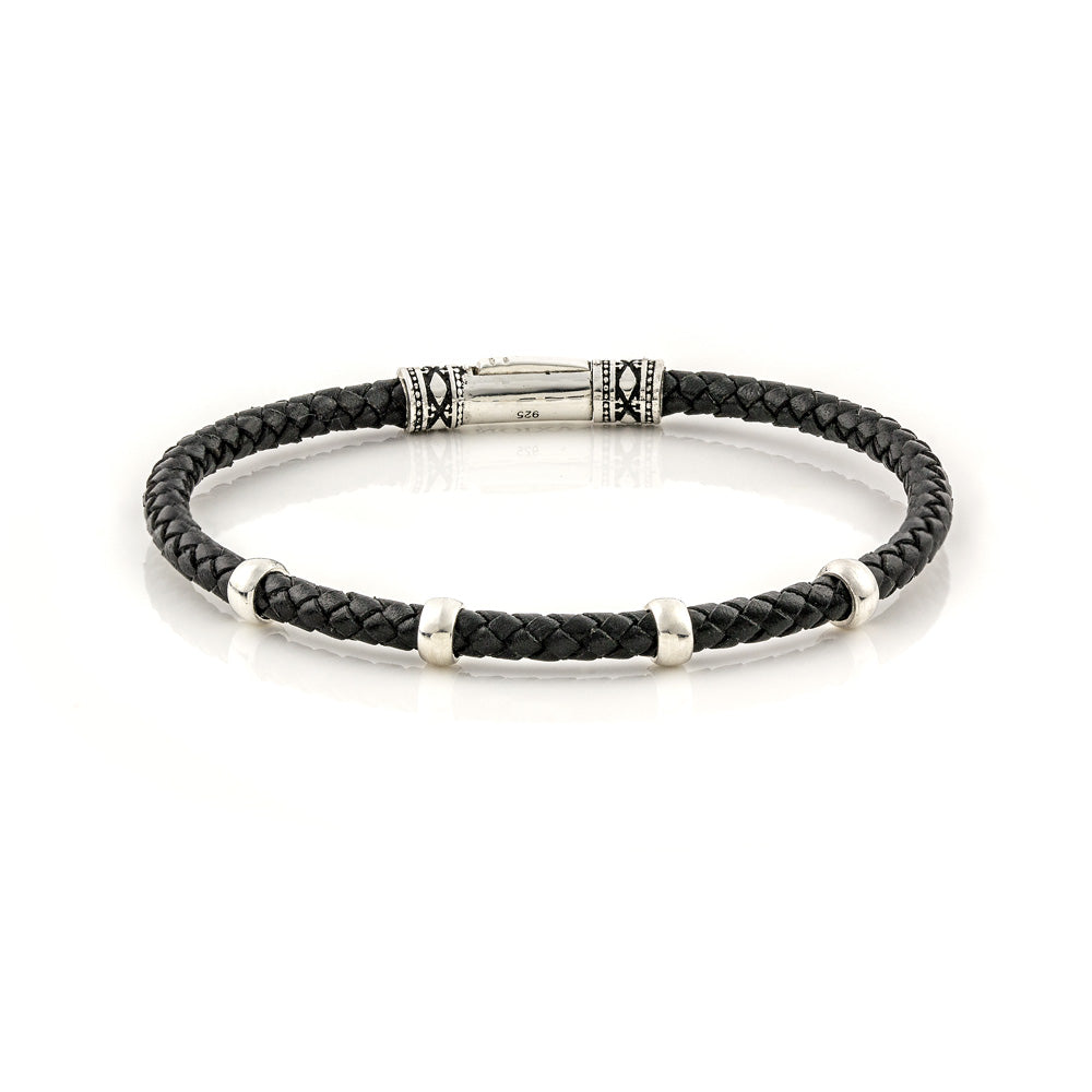 Ασημένιο βραχιόλι 925ο με κομψά ασημένια μοτιφ και γνήσιο πλεκτό δέρμα, ως μία μινιμαλιστική αλλά ενδιαφέρουσα προσθήκη στην εμφάνισή σας.