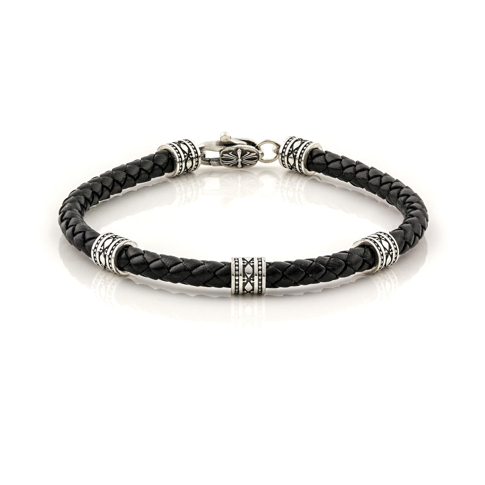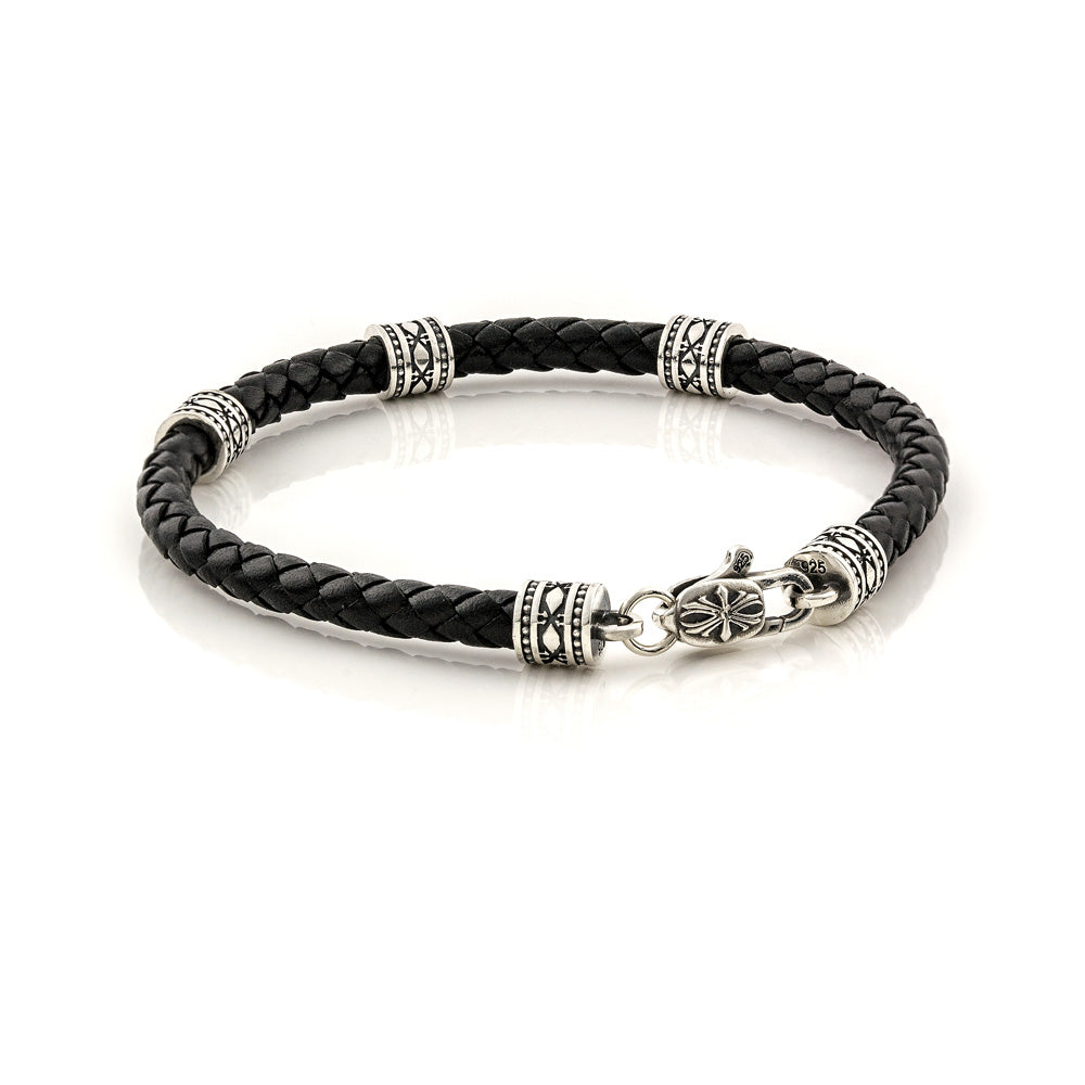 Ασημένιο βραχιόλι 925ο, με μοντέρνους μεταλλικούς σχεδιασμούς και σώμα από γνήσιο δέρμα.