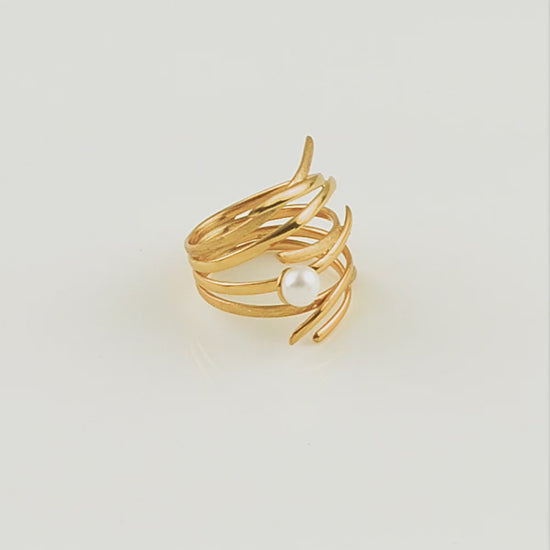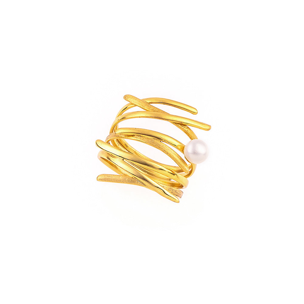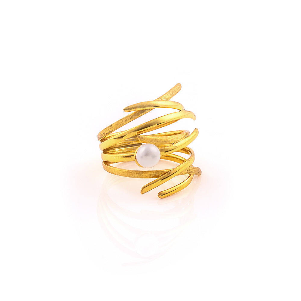 Ασημένιο δαχτυλίδι 925ο σε ιδιαίτερο κλαδωτό σχήμα του οποίου τα άκρα συγχέονται και στολισμένα από ένα μαργαριτάρι γλυκού νερού δημιουργούν ένα μαγευτικό κομμάτι με λεπτομέρειες που διαφοροποιούν την αντανάκλαση της κάθε γραμμής