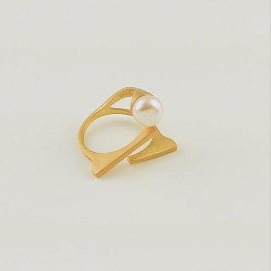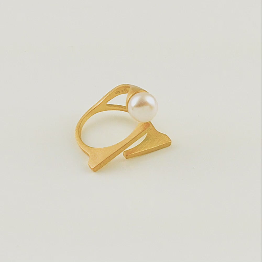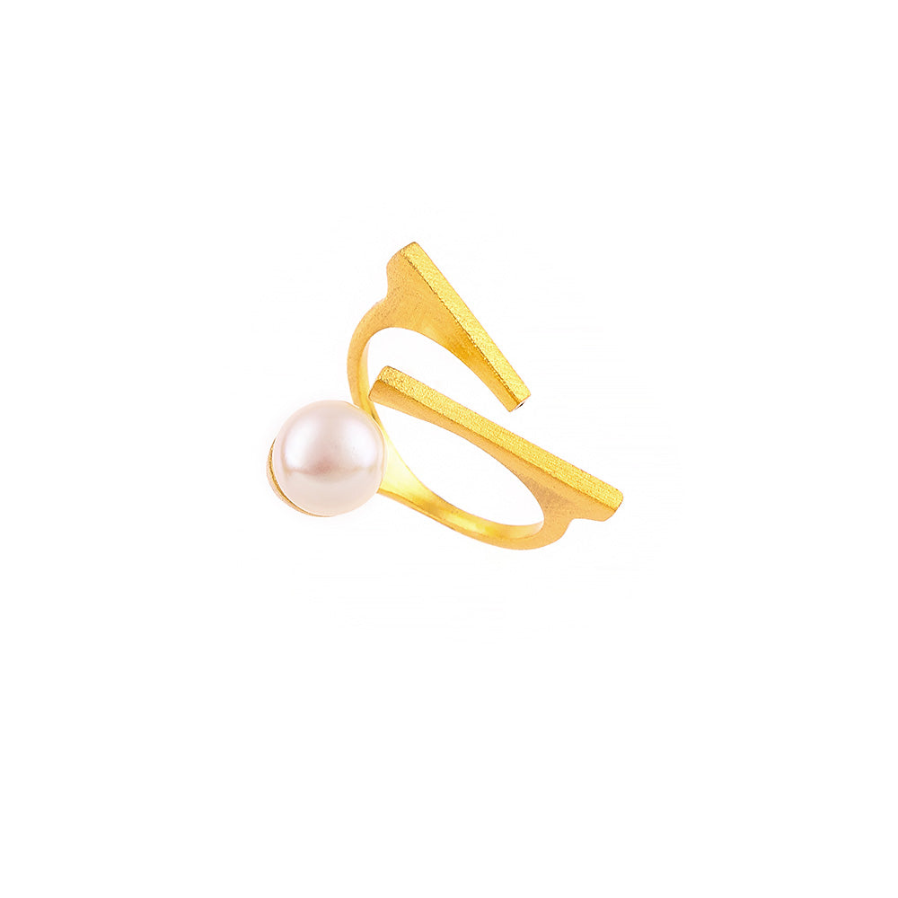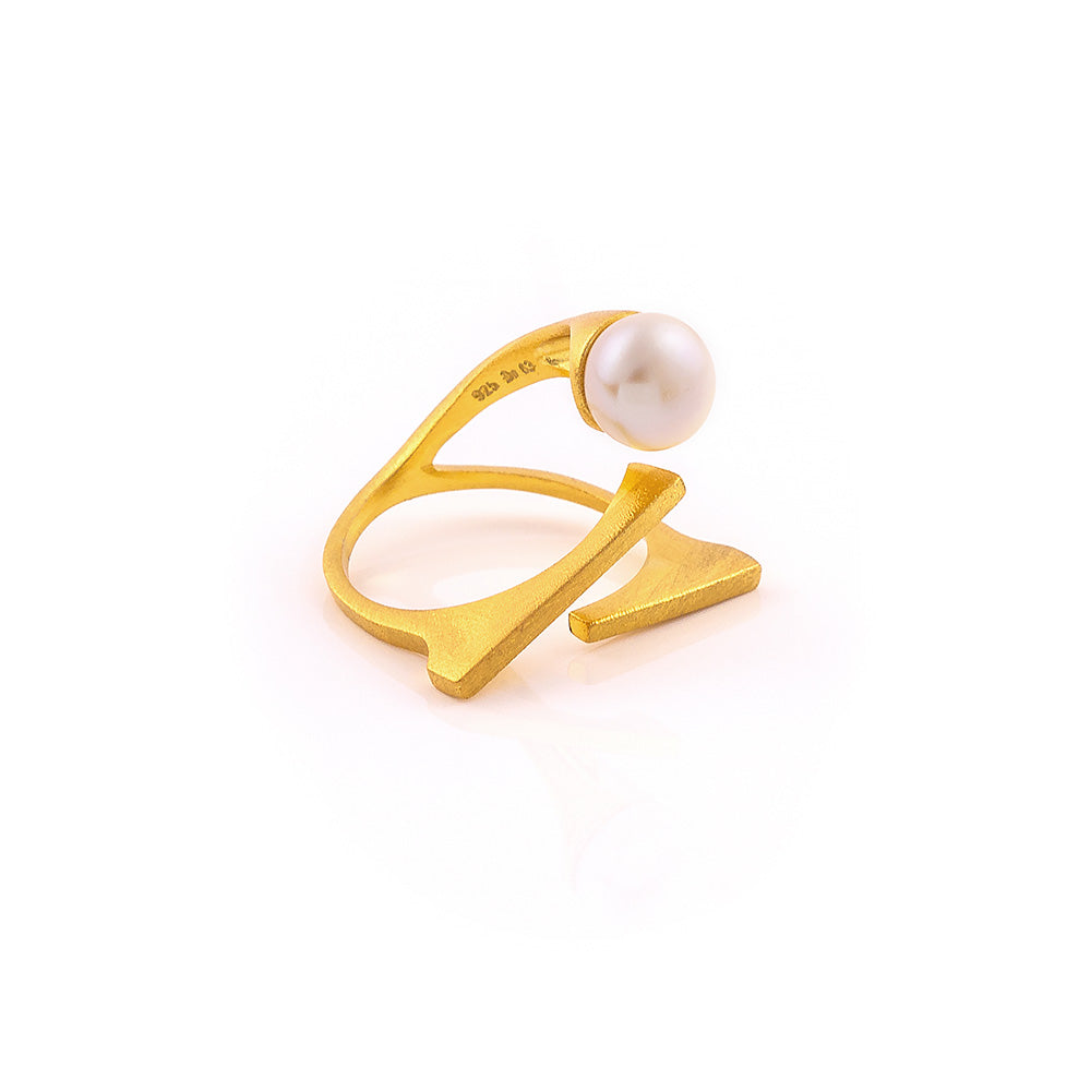 Ασημένιο δαχτυλίδι 925ο σε μοντέρνο ανοιχτό σχήμα με συμμετρικό τελείωμα στα δύο άκρα και επιμήκυνση της κορυφής που καταλήγει σε στρογγυλό μαργαριτάρι του γλυκού νερού. Η αποτύπωση του συνδυασμού της  σταθερότητας με τη φινέτσα, ως απόδειξη πως το τέλειο κόσμημα υπάρχει.