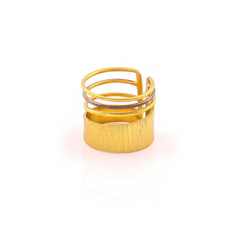 Ασημένιο δαχτυλίδι 925ο σε μοντέρνο σχέδιο διαδοχικών γραμμών, με τη μία να ξεχωρίζει σε πάχος και την άλλη να προσθέτει μία διακριτική μαύρη λεπτομέρεια. Εξαιρετικό κομμάτι, για κάθε περίσταση.