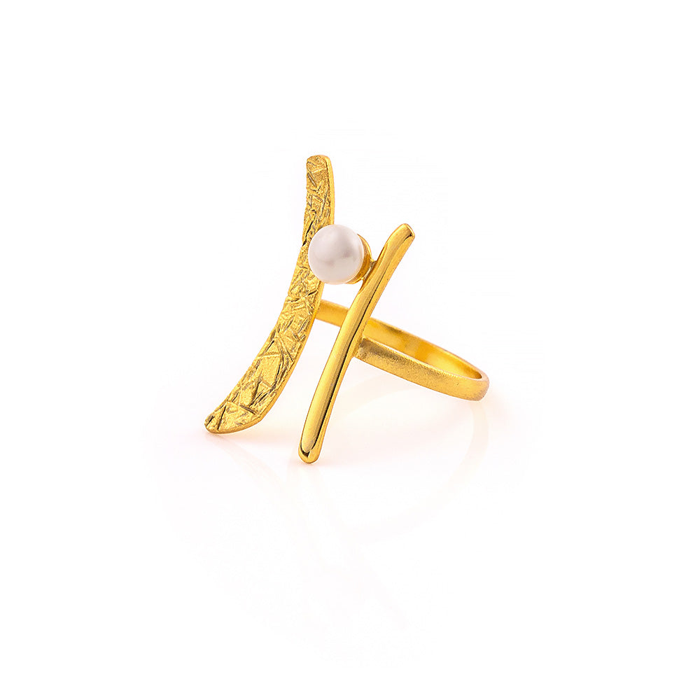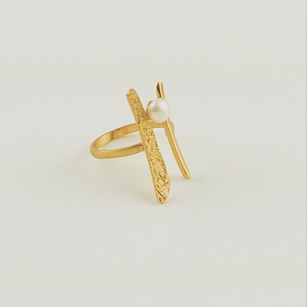 Ασημένιο δαχτυλίδι 925ο σε σχήμα παράλληλων γραμμών που συναντώνται με ένα μαργαριτάρι γλυκού νερού και δημιουργούν ένα κόσμημα στολίδι!