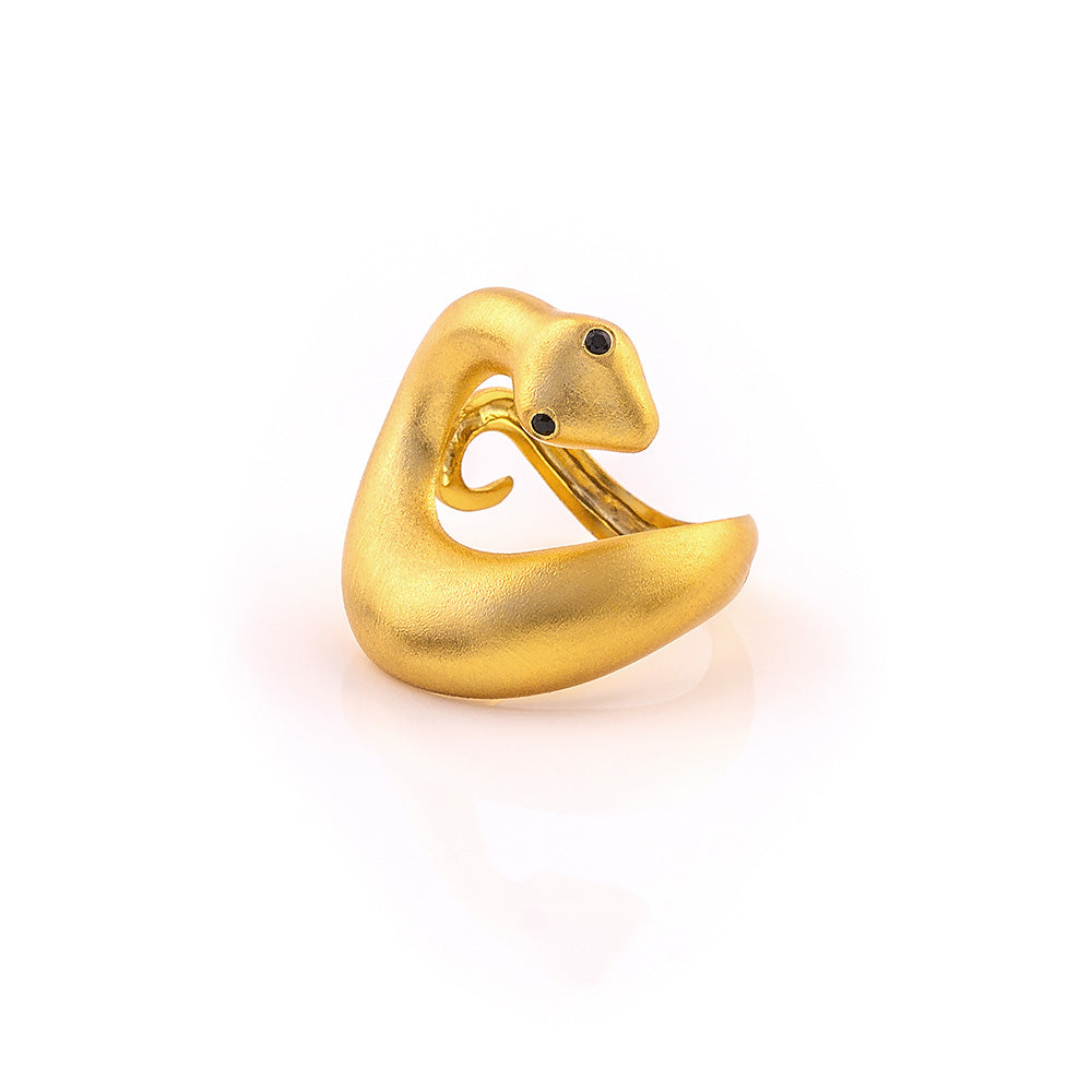 Ασημένιο δαχτυλίδι 925ο σε σχήμα αριστοκρατικού φιδιού, με λέπτυνση της ουράς και λεπτομέρειες που δίνουν κίνηση και μαγνητίζουν τον παρατηρητή, στολισμένο με μαύρα ζιργκόν.