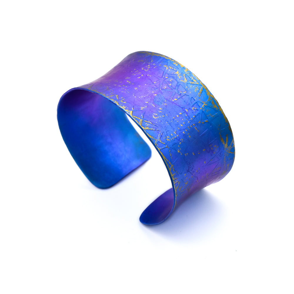Βραχιόλι από ανοδιωμένο τιτάνιο σε μπλε και μωβ αποχρώσεις, που παραπέμπουν σε διαστημικές εξορμήσεις, έτοιμο να απογειώσει την κάθε σας εμφάνιση!