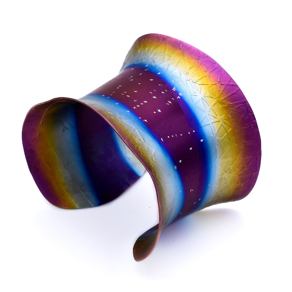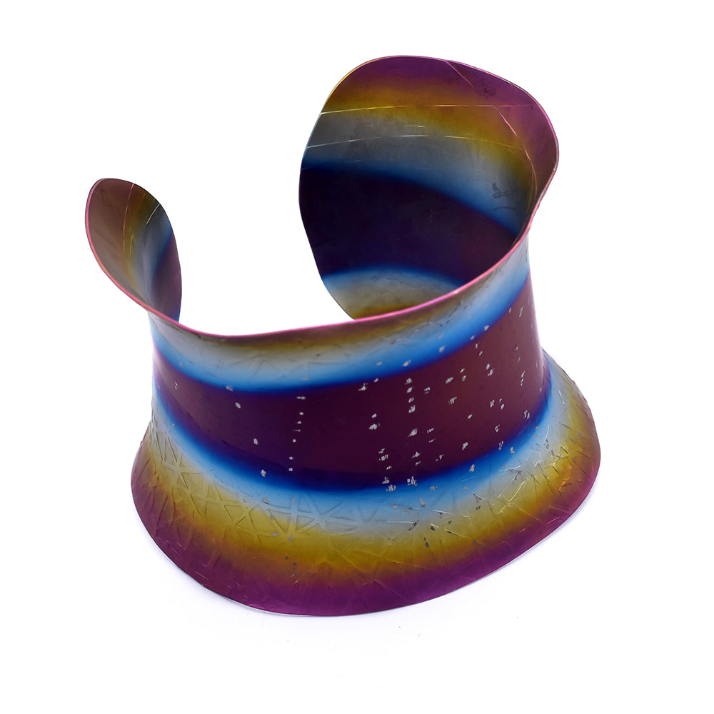 Βραχιόλι σε κυρτή πολύχρωμη μανσέτα από τιτάνιο, που κατακτά το χώρο και μαγνητίζει τα βλέμματα, αποτελώντας ένα ανεπανάληπτο έργο τέχνης!