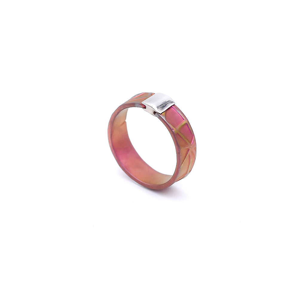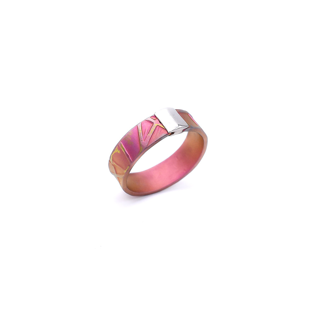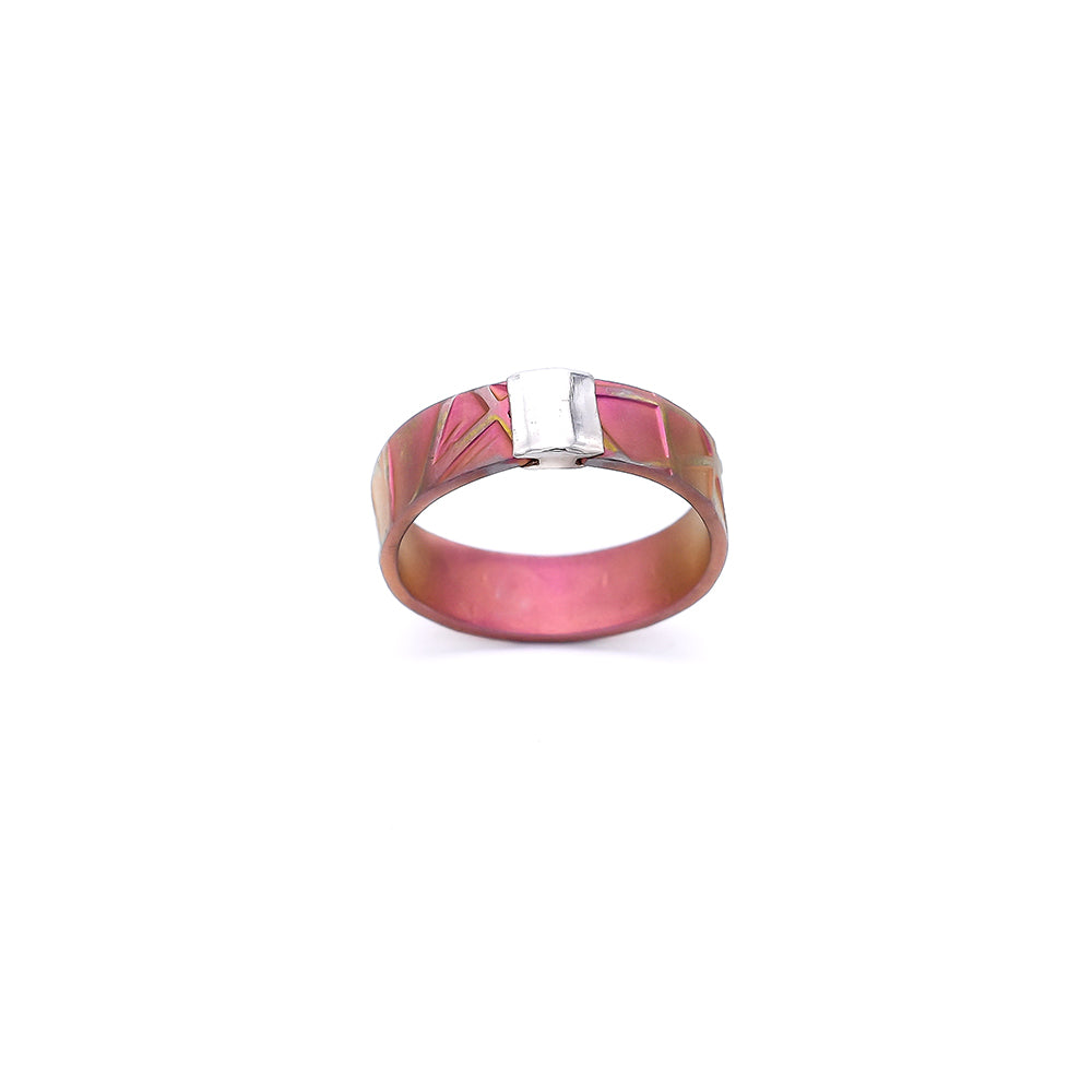 Δαχτυλίδι από ανοδιωμένο τιτάνιο με μία διακριτική ασημένια προσθήκη και όμορφες λεπτομέρειες που ζωηρεύουν τη φαντασία.