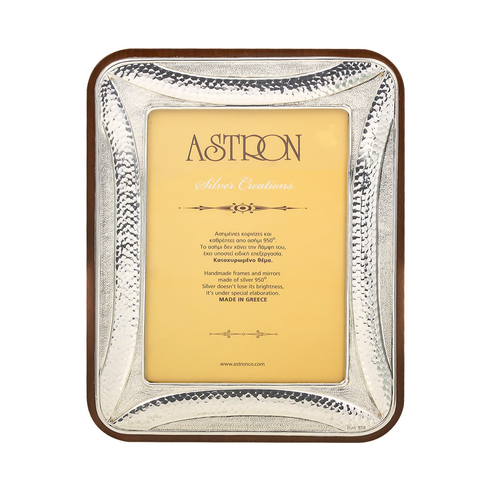 Όμορφη κορνίζα σε silver film με μοντέρνα λείανση στις γωνίες και ξύλινη πλάτη.