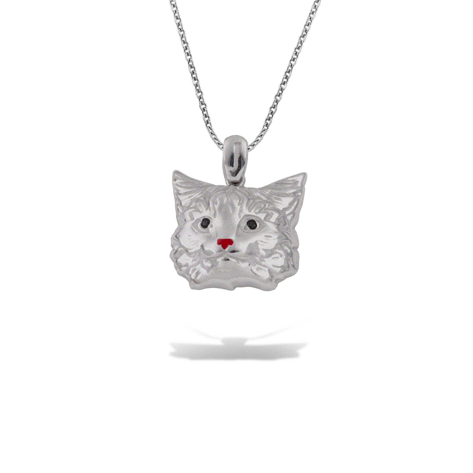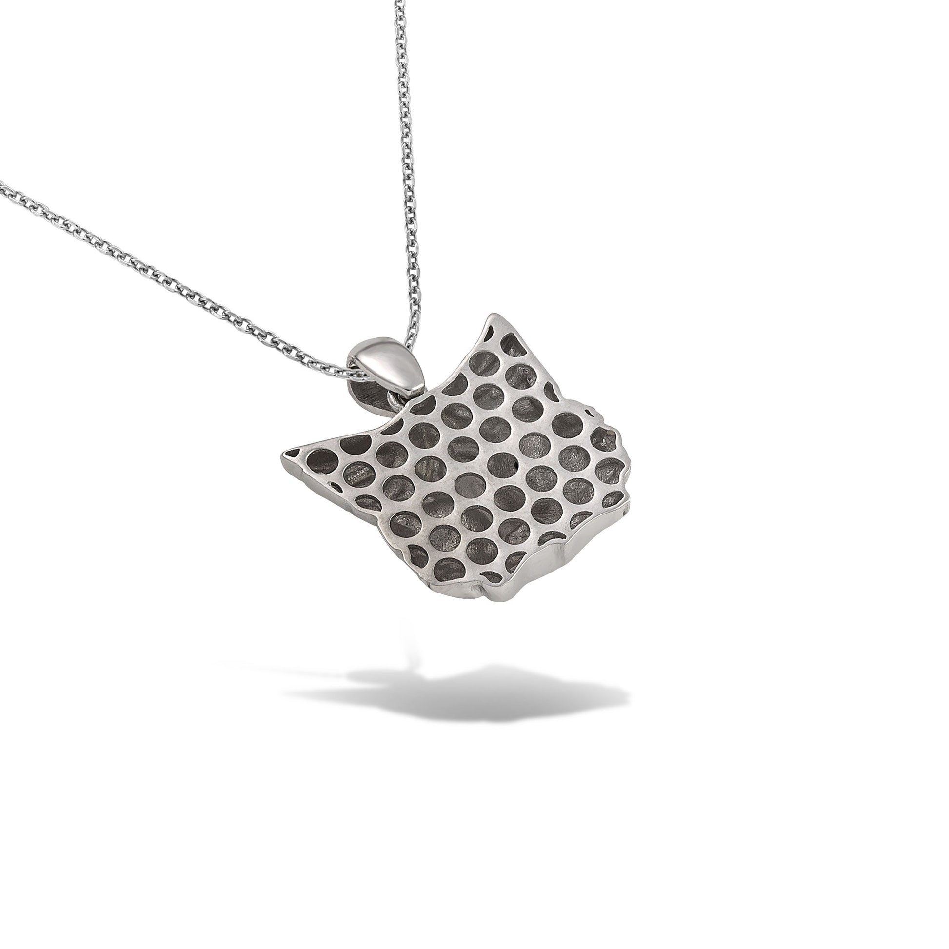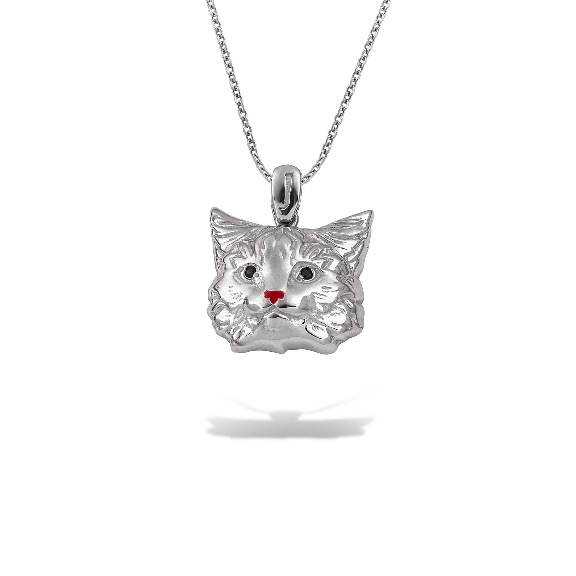 Λευκόχρυσο μενταγιόν Κ18 με μαύρα διαμάντια και σμάλτο, σε σχέδιο γατίσιας μουσούδας με εντυπωσιακές λεπτομέρειες, που μαγνητίζουν το βλέμμα!