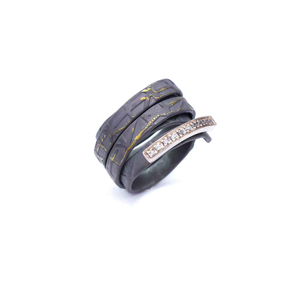 Αντισυμβατικό δαχτυλίδι από ανοδιωμένο τιτάνιο με ασημένια μπάρα με 10 ζιργκόν, που φτιάχτηκε για να κάνει τη διαφορά.