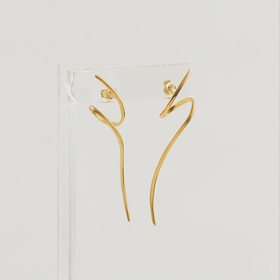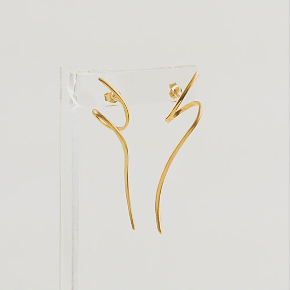 Ασημένια σκουλαρίκια σε σχήμα που μοιάζει με αποθανατισμένη στιγμιαία γραμμή, αφήνοντας την υπογραφή τους ως η τελευταία τάση της μόδας.