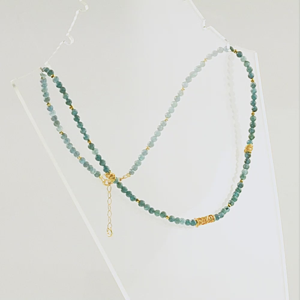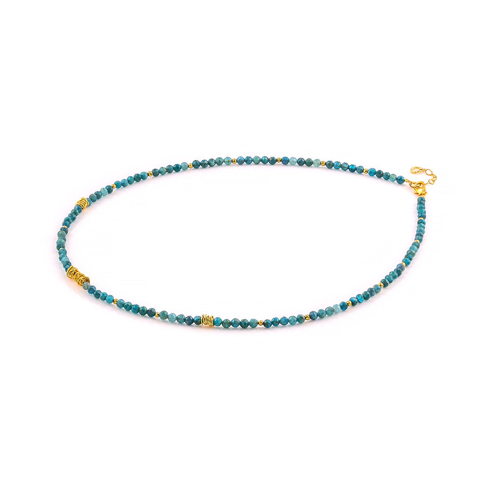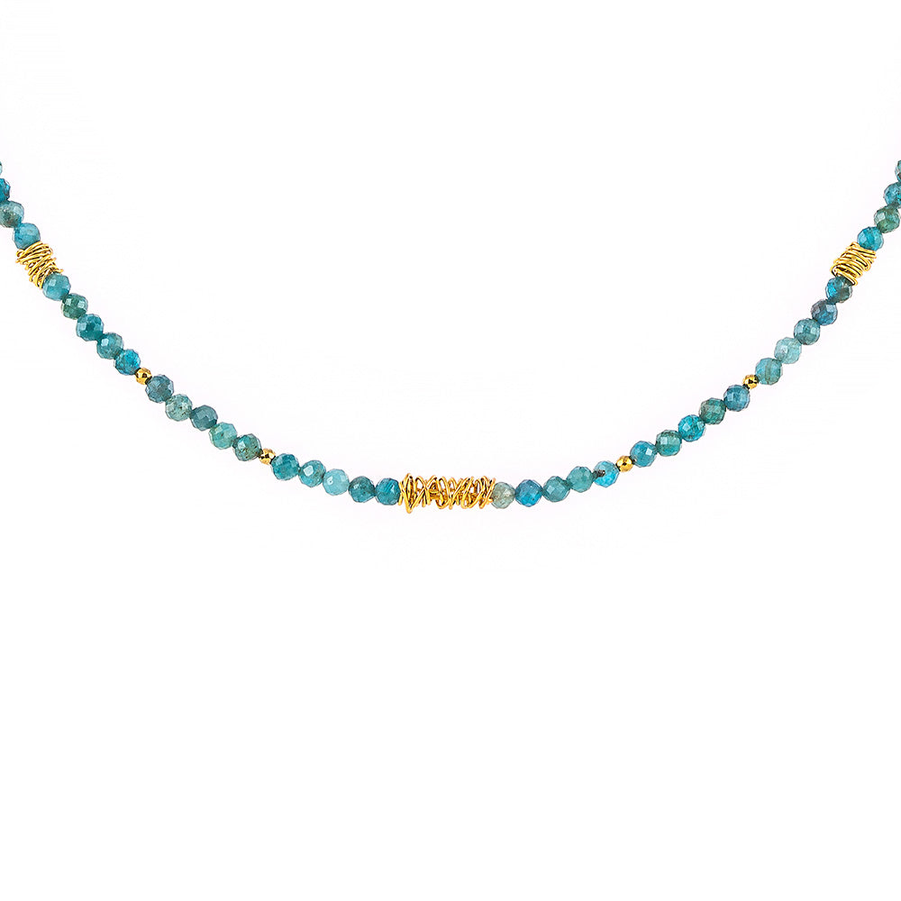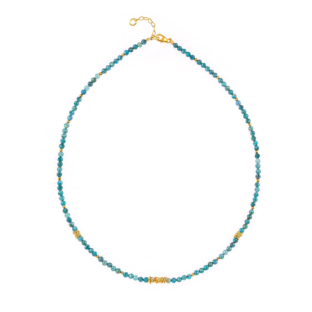 Ασημένιο κολιέ 925o με απατίτη και μοντέρνες γραμμικές προσθήκες μετάλλου που του δίνουν μία σύγχρονη νότα και αναδεικνύουν τη λάμψη του.