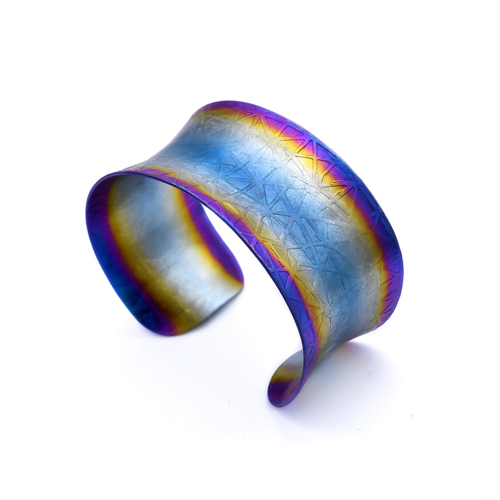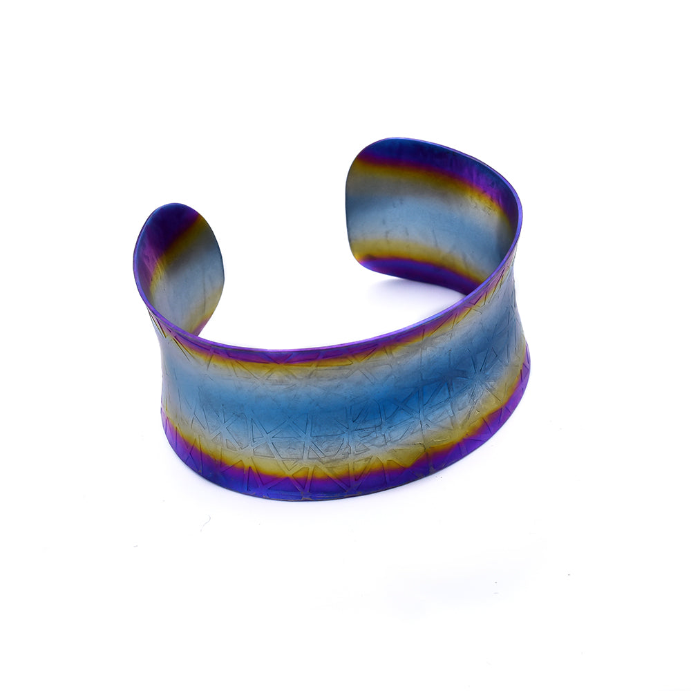 Βραχιόλι πολύχρωμης φαρδιάς μανσέτας από οξειδωμένο τιτάνιο, επιβλητικού σχεδιασμού που ξεπερνά τα όρια μιας συμβατικής εμφάνισης και αιχμαλωτίζει τα βλέμματα!