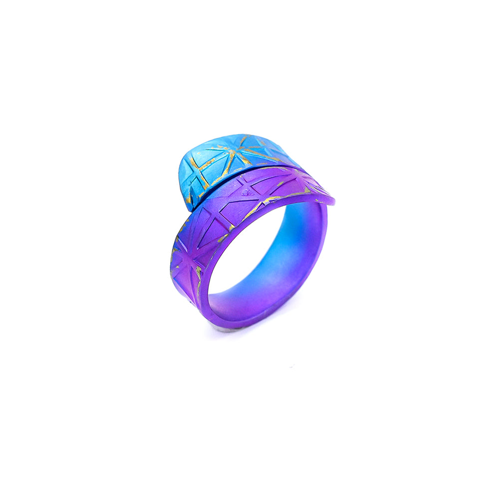 Ρυθμιζόμενο δαχτυλίδι από τιτάνιο σε αποχρώσεις του μωβ και του μπλε, που μας απογειώνουν και μας ταξιδεύουν ως τον ουρανό!