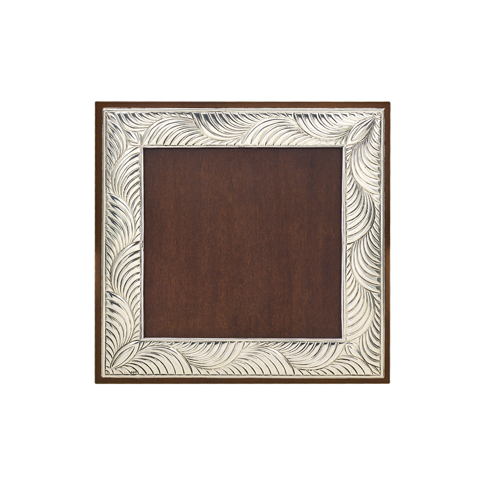 Τετράγωνη κορνίζα σε silver film με όμορφο κυματιστό σχεδιασμό και ξύλινη πλάτη.