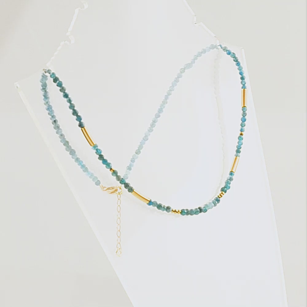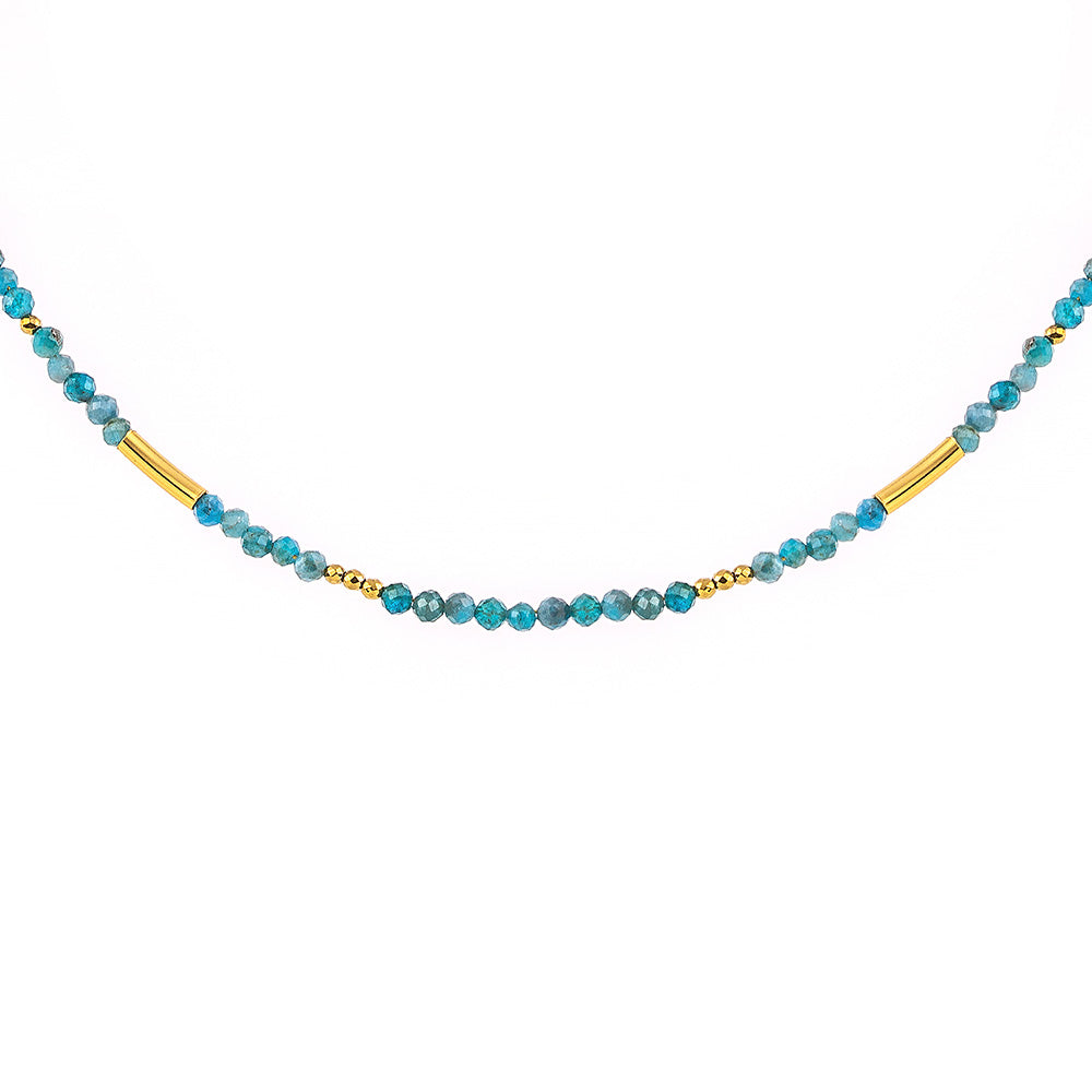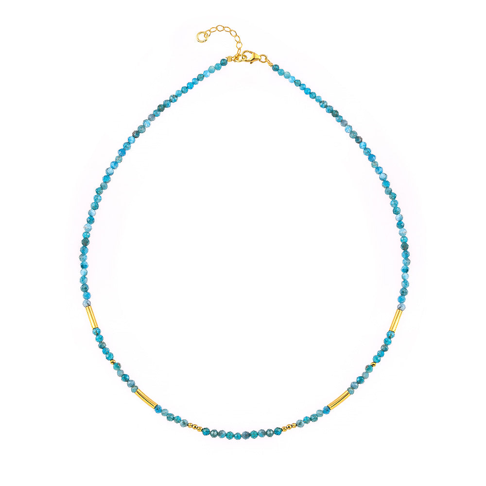 Ασημένιο κολιέ 925ο με απατίτη και μοντέρνες προσθήκες μετάλλου που του δίνουν μία σύγχρονη νότα και αναδεικνύουν τη λάμψη του.