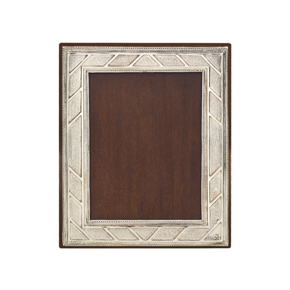 Όμορφη ασημένια κορνίζα 925ο με γεωμετρικές χαρακιές, σε ξύλινη πλάτη.