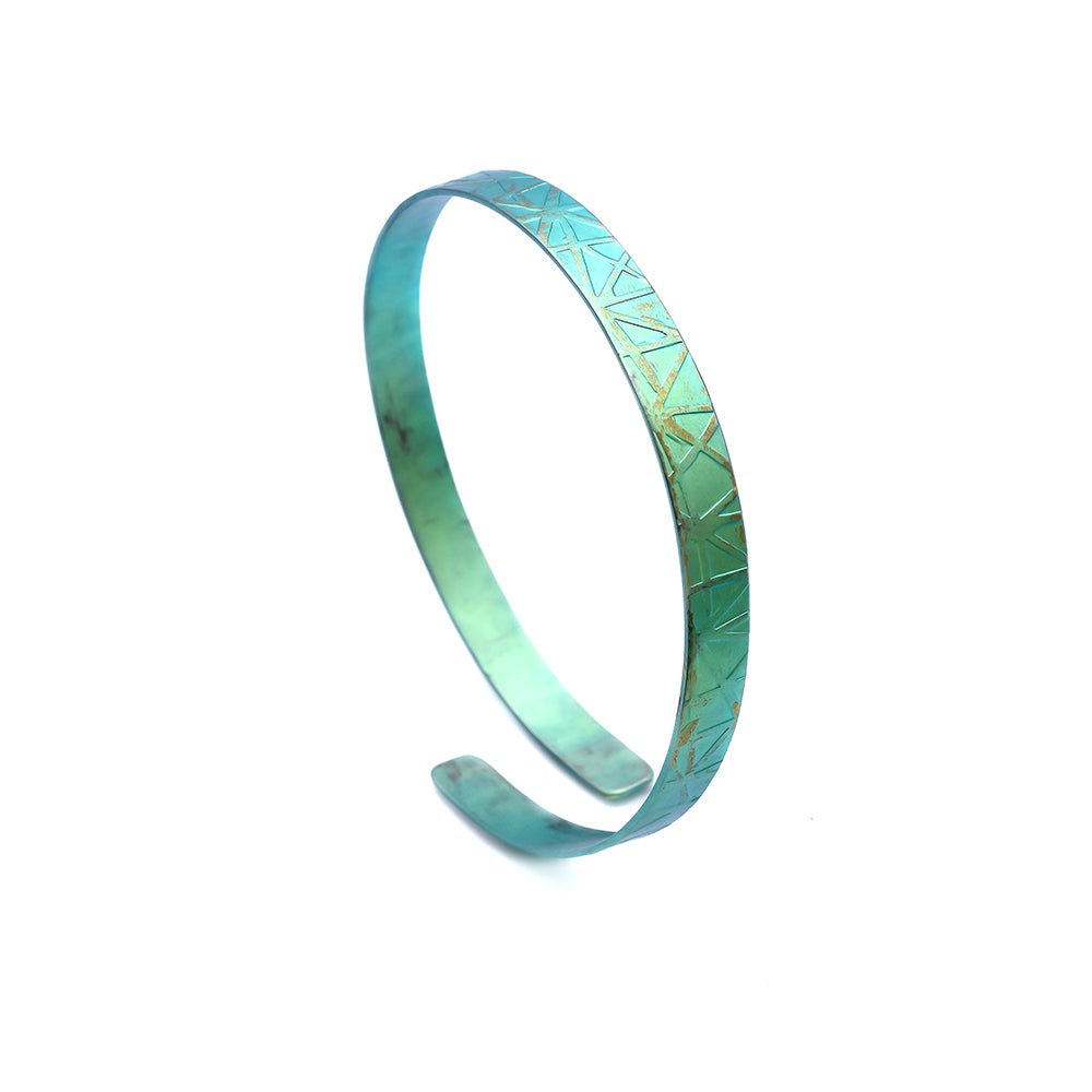 Λεπτό εύκαμπτο βραχιόλι από ανοδιωμένο τιτάνιο με ανάγλυφη υφή, που προσθέτει δυναμισμό και αυτοπεποίθηση στην εμφάνιση.