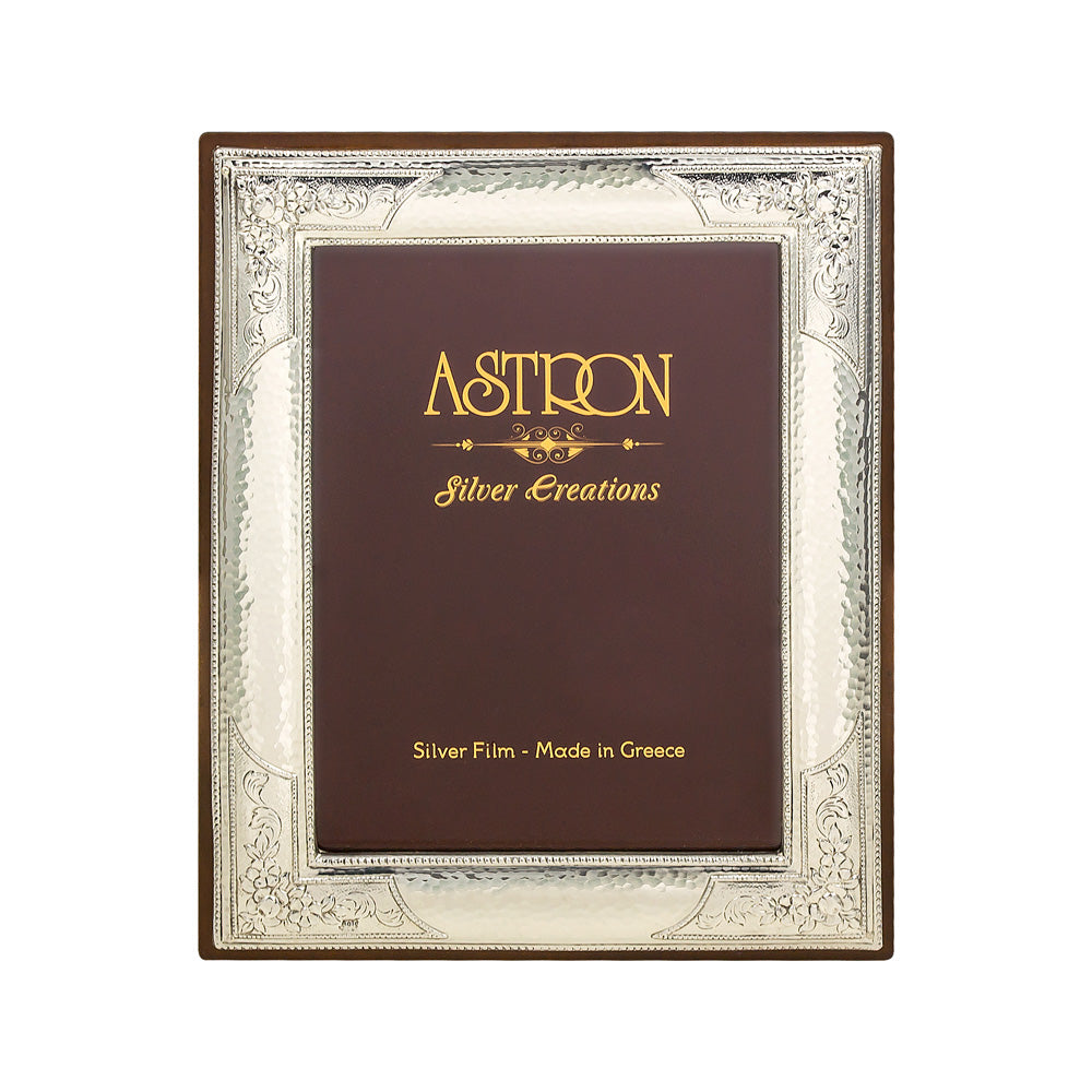 Όμορφη κορνίζα σε silver film με μοντέρνο συμμετρικό σχέδιο και ξύλινη πλάτη.