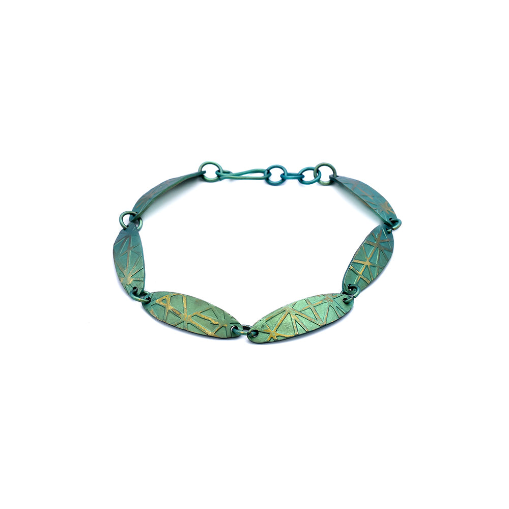 Unisex βραχιόλι σε πράσινο χρώμα από οξειδωμένο τιτάνιο, που φέρει έναν αρμονικό συνδυασμό δύναμης και ομορφιάς. Το σχήμα του, συνδυάζοντας επιρροές κλασσικού και σύγχρονου σχεδιασμού, αποτυπώνει μία δυναμική κομψότητα χωρίς προηγούμενο.