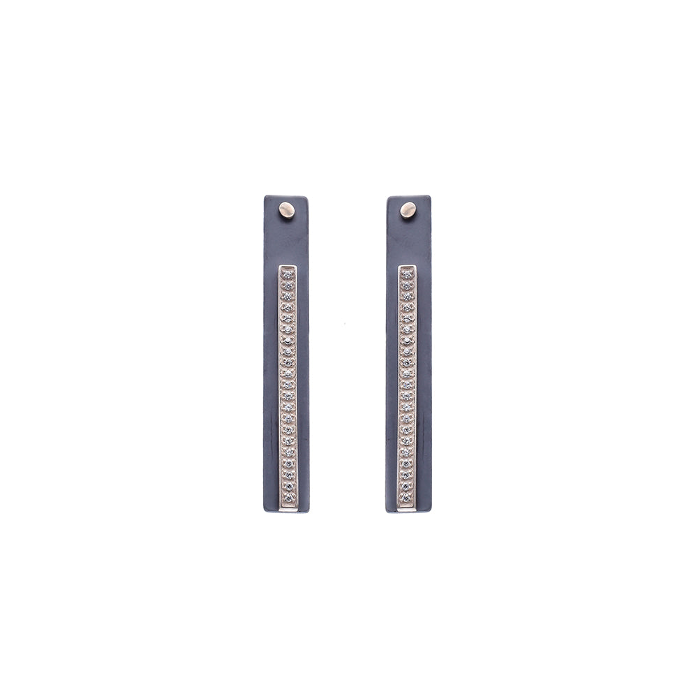 Urban γεωμετρικά σκουλαρίκια τιτανίου για ευαίσθητα αυτιά, με ασημένια μπάρα με 21 ζιργκόν, που αναδεικνύουν μία δυναμική κομψότητα.